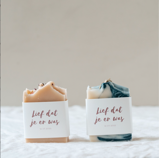 Onze zepen zijn duurzaam, zacht voor de huid en een klein stukje luxe dat gasten thuis nog lang zullen koesteren. Zo wordt elk bedankje een tastbare herinnering aan jullie dag.